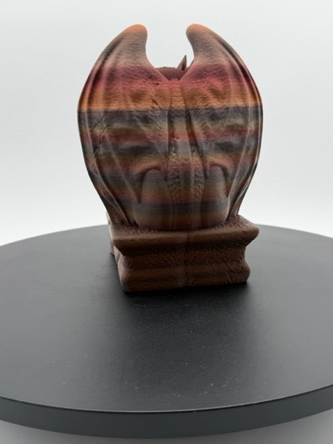 With a watchful gaze and powerful wings, this gargoyle will send your dice tumbling through its hidden chambers. Your dice will then emerge from a clover-shaped basin at the front of the pedestal, ensuring they land fairly and are ready for your next move.